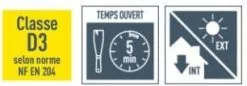 La Colle à Bois Extérieure est idéale pour l’assemblage le placage des bois extérieurs abrités des intempéries ou des bois intérieurs dans les pièces humides (cuisines, salles de bains) : Classification D3 selon la norme NF EN 204. À base de résine vinylique et en phase aqueuse, elle est totalement transparente et invisible après séchage et possède une excellente résistance mécanique et thermique (jusqu’à 70°C).