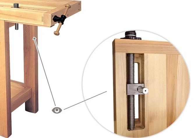 Généralement installée en bout d’établi, elle sait se faire discrète et efficace, encastrée sous le plateau elle permet d’optimiser la surface du plateau.